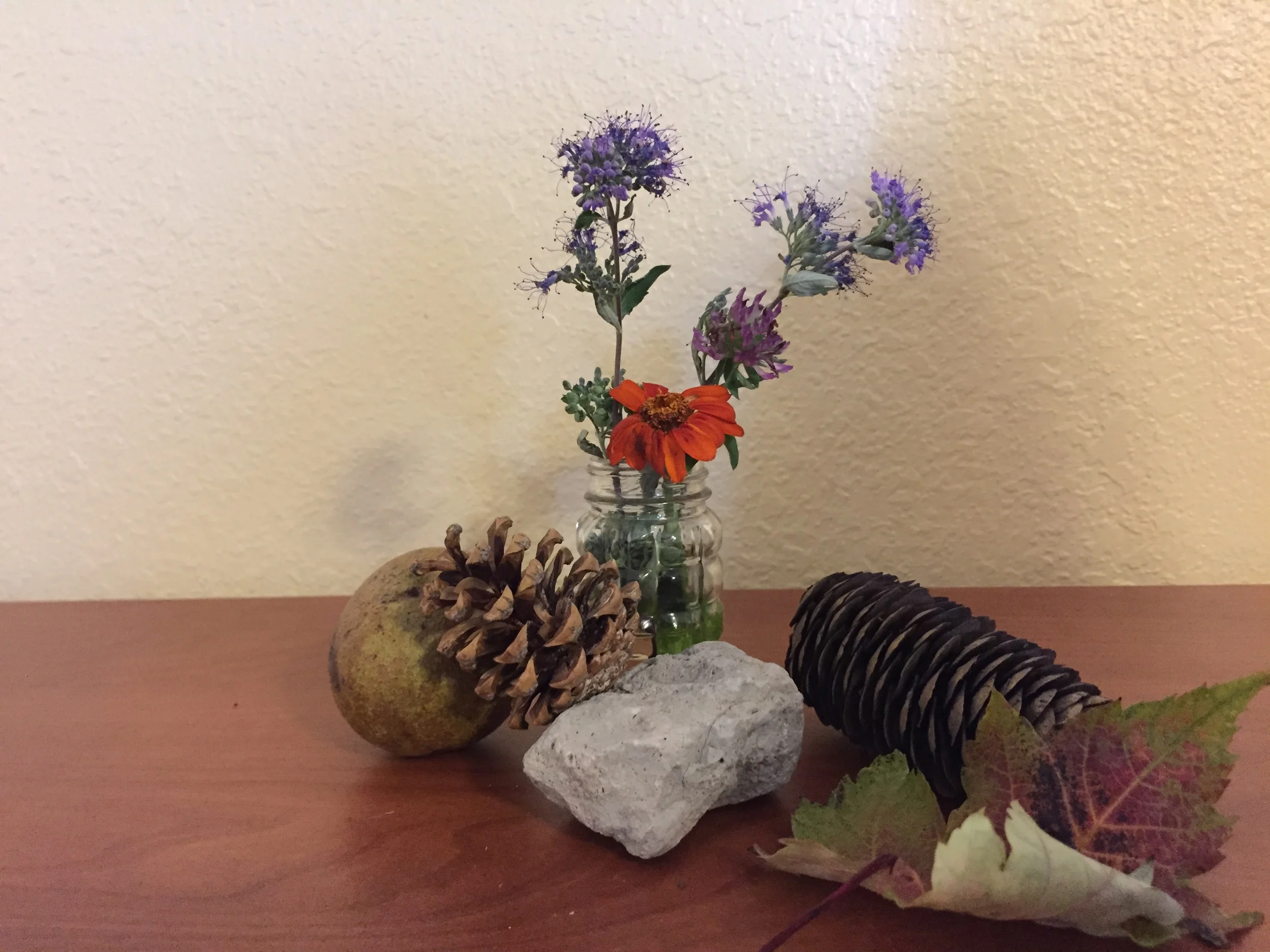 When we went to a park or on a walk, I tried to find something to add to our nature display on the table. More than once I walked past our collection and smiled. Bringing the outdoors in reminded me that though not ideal, this was our space where love and healing were happening. It was a space worth making beautiful. Salt shakers make good vases. Take those little salt packets from the breakfast room if you need salt.