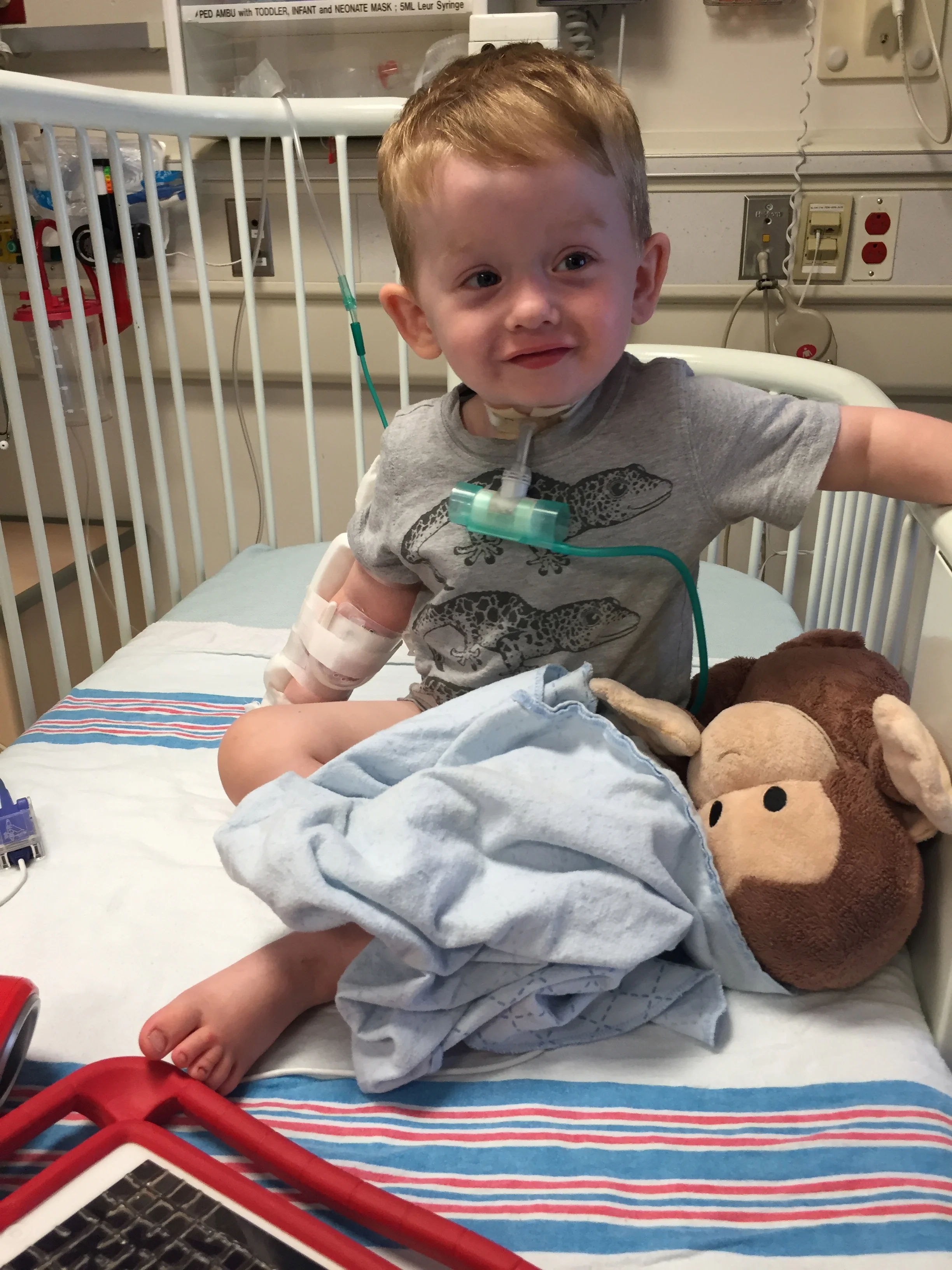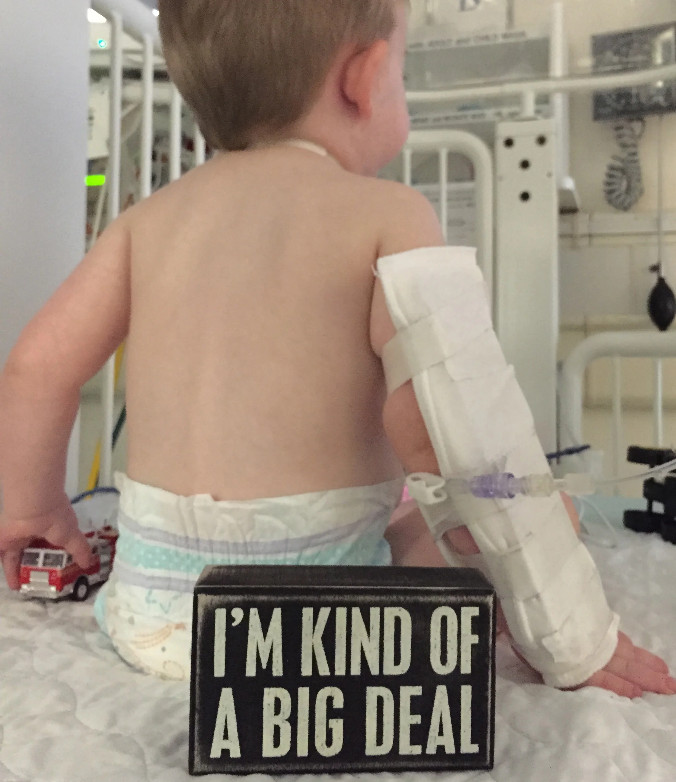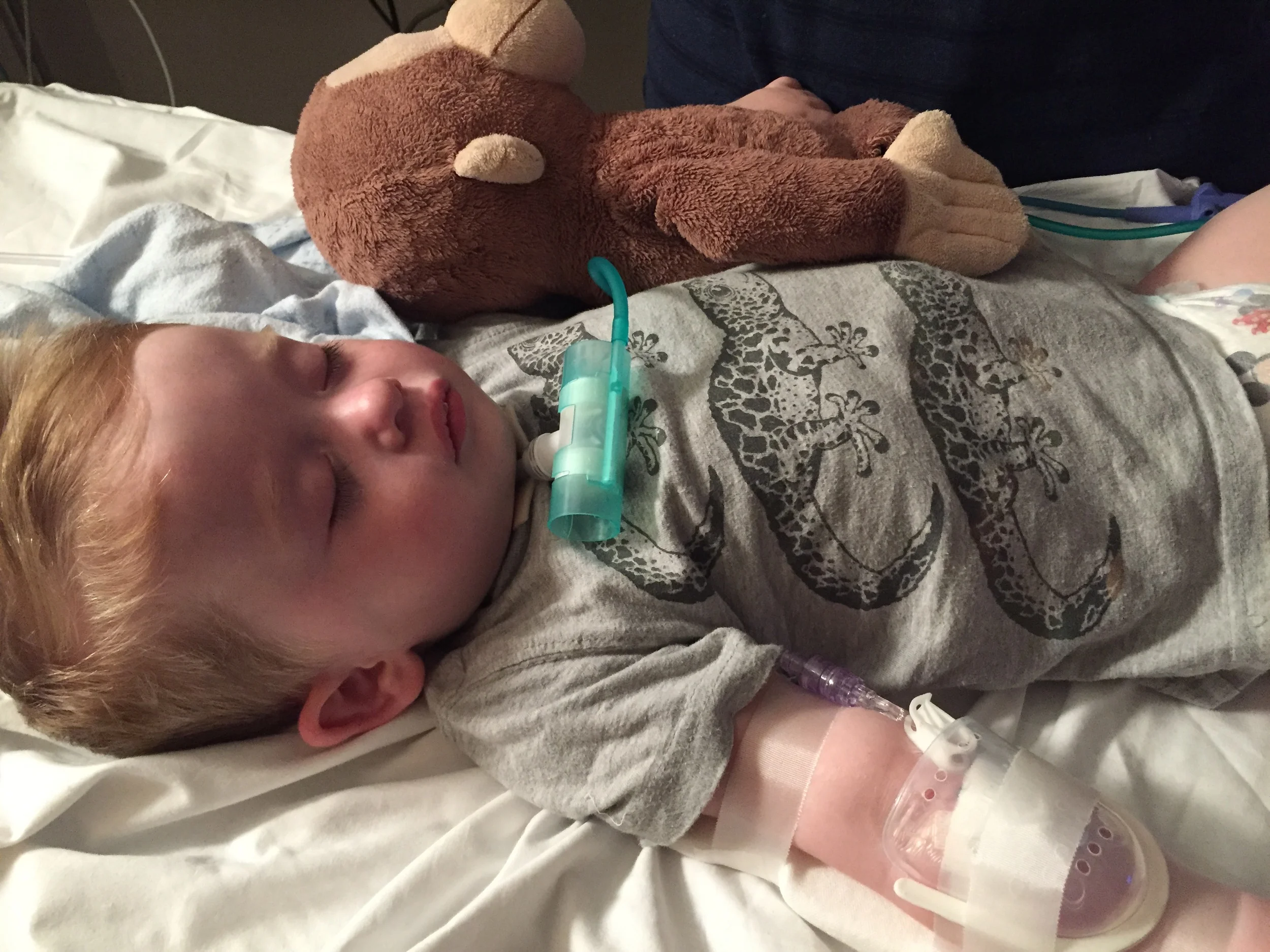 Nathaniel tested positive for the common cold virus. Unfortunately, with it comes common-to-Nathaniel symptoms that can sometimes require the support of the hospital and IV fluids. I fought an admission for three hours. I requested residents from ENT and Pulmonology come to the Emergency Unit to evaluate. Together we created a plan for going home and the if-he-does-this-list for coming back. I texted Nathaniel's siblings and grandparents that we were not staying. And then Nathaniel projectile vomited what appeared to be an entire feed. Heads shook. "Sorry Mom, he is going to get dehydrated. Let us start an IV now." They called for the Vein Team, and he was admitted.