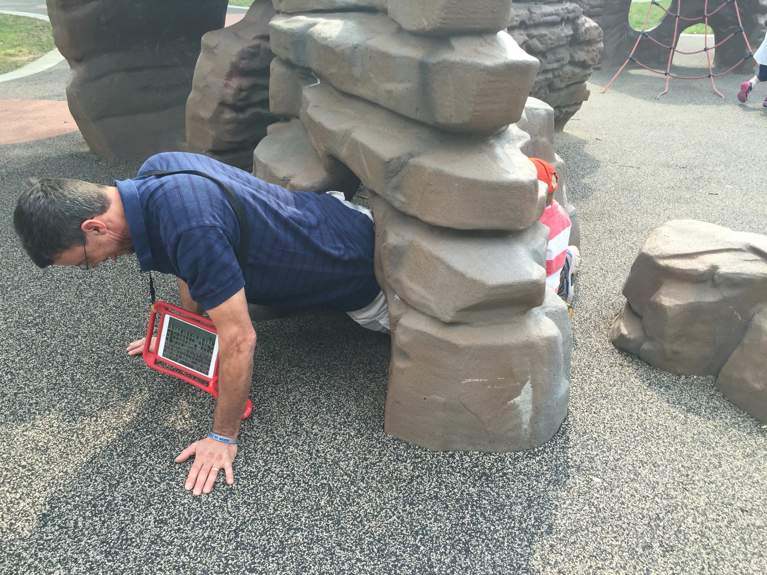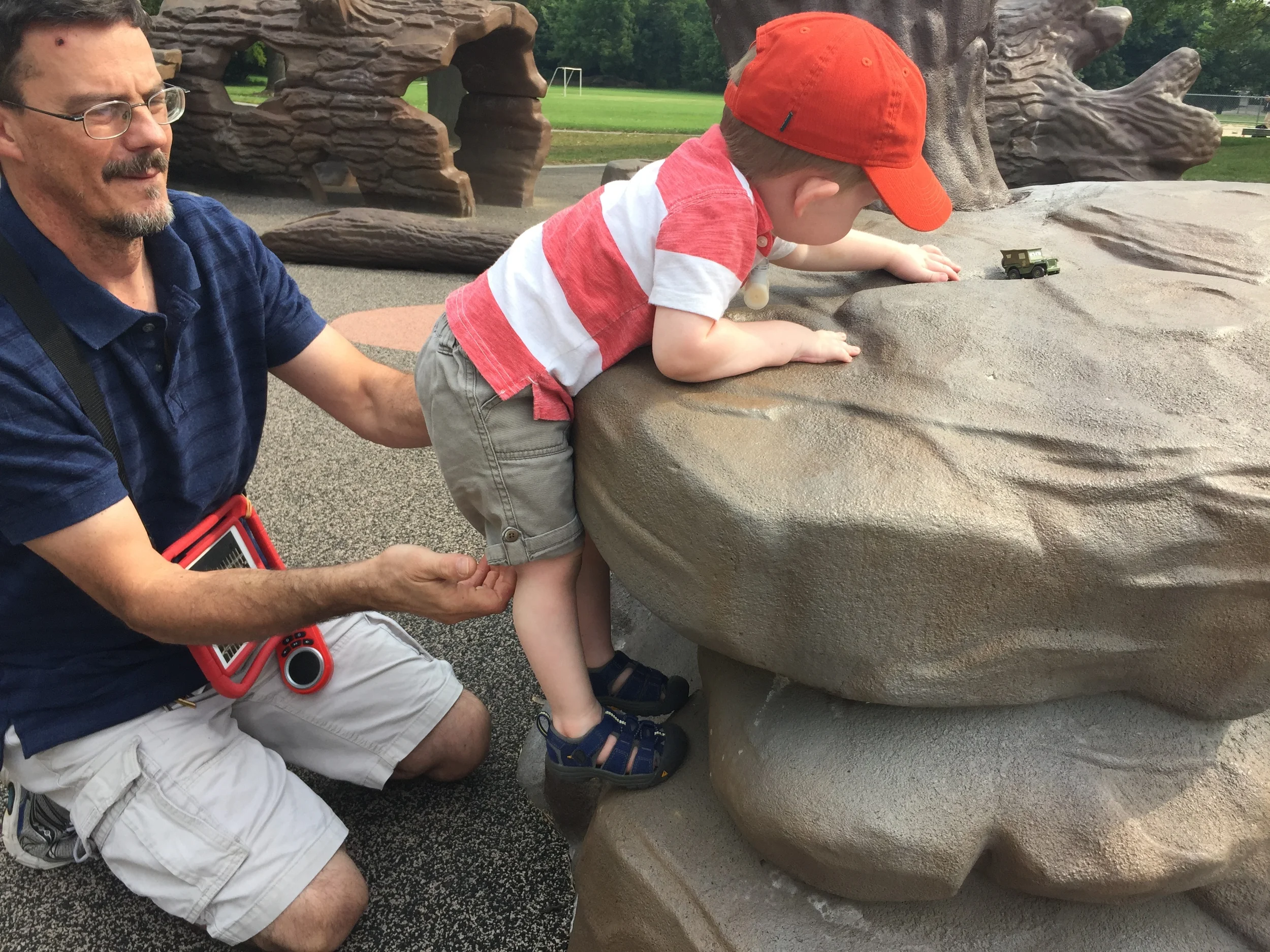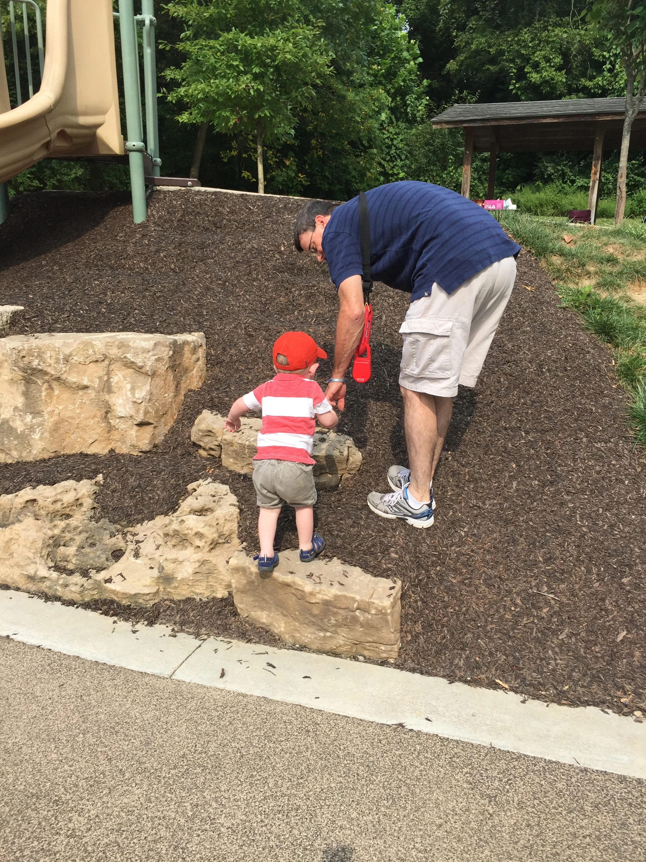To celebrate the completion of our first school week, we spent a beautiful Saturday morning playing and walking at the park. One of our new adventures this school year is to have a primary communication partner wear Nathaniel's talker so it is available to model his expressive language at all times. Rich continues to amaze me. He is fifty-five years old, has raised seven kids, and could be spending his Saturday morning doing so many other things. But he was at a playground, learning a second language, and proving with his whole being how much he believes Nathaniel can live a normal life. In our adoption interview, Rich told everyone that he expects to someday do a backpack trip at Philmont High Adventure Ranch with Nathaniel. Many had expressions of doubt. What I don't think they realized was that Rich would help Nathaniel train for that outing from the beginning. Because you don't wake up fifteen years down the road and tell a kid his disabilities shouldn't stop him. You get on your hands and knees day after day and show him.