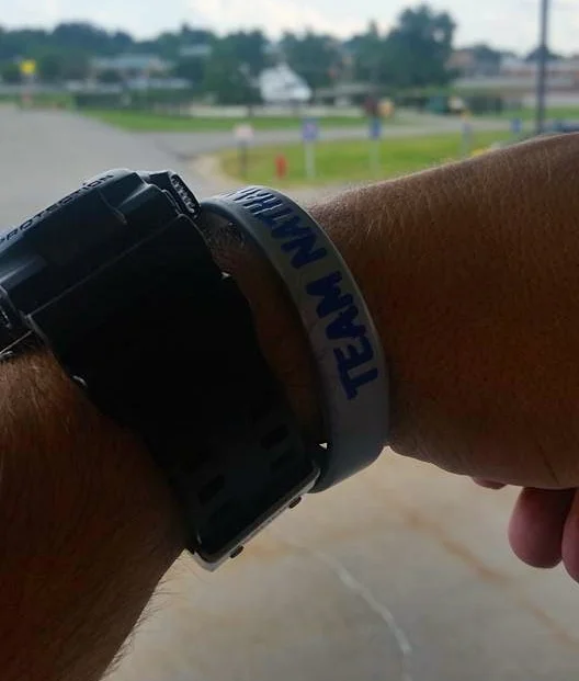 We were getting Nathaniel settled into his room when I heard a helicopter arrive at the hospital. About twenty minutes later a medic, Andrew, appeared at the door in a flight suit. We know Andrew from our ambulance district; he works flight transport for the hospital and street level in our district. He has been in our home and has loved on Nathaniel when we've done trainings at the station. A few weeks ago he ordered a Team Nathaniel wrist band. It was on his wrist Sunday. He shared the photo below to my Facebook page later that evening. Seeing Andrew at the door made me start crying again. It was like God was speaking to my heart, "I see Nathaniel from the highest of the heavens, Kim. I have written his name on my wrist with an everlasting love that will never fail."