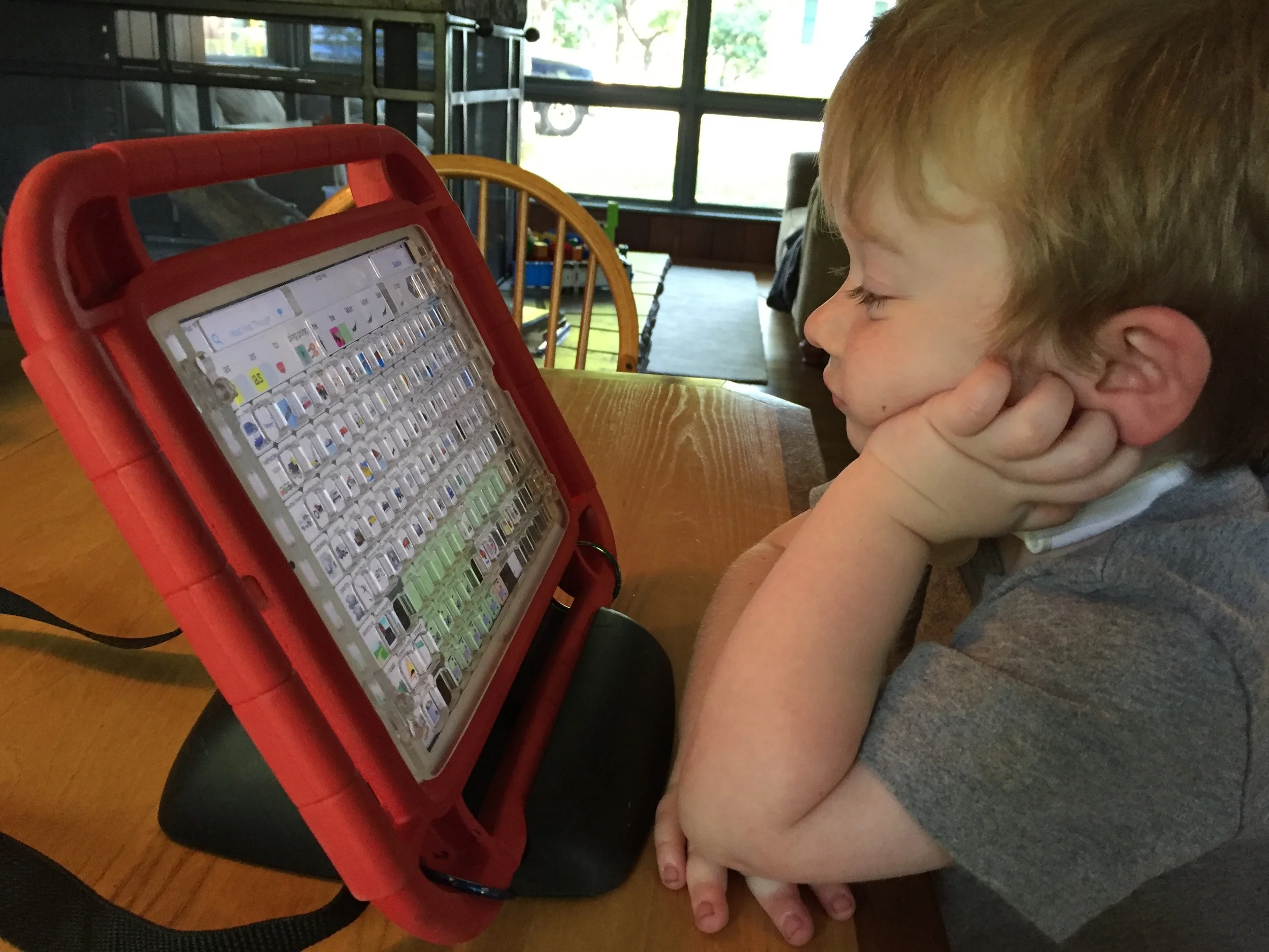 Two years ago today we gave Nathaniel an iPad mini with an augmented communication app. He was twenty months old. There was much we did not know at the time. We knew very little about augmented communication or Nathaniel's long term communication needs. We did not know about key guards or child friendly cases or stands or modular tubing to hold the device at an easy access point. In some ways this might have worked in our benefit. In all our not knowing, we did not know how unusual it was to give a twenty-month old a high-tech, voice output device. We wanted to give our son access to words. Lots of words. All the words he needed to be fully twenty months old