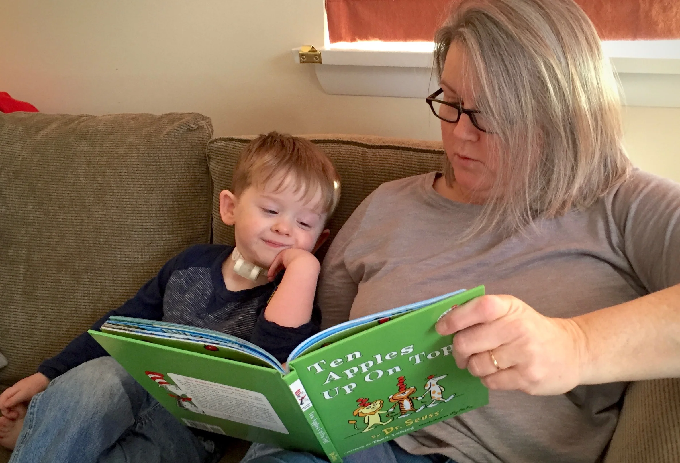 We settled into using private therapy for some of Nathaniel’s needs and state funded early intervention services for others. Working daily on therapy goals mimicked the hours I spent homeschooling my older children when they were young. Nathaniel’s early intervention team met regularly to set goals, and repeatedly insisted on an oral feeding goal despite my concerns of aspiration. No one believed aspiration was possible due to the complexity and severe narrowing of his airway. Nathaniel’s behavior when feeding, his constant coughing, his high level of tracheal secretions, and his frequent bouts of pneumonia convinced me otherwise. I fought hard against anyone who encouraged feeding him orally. It took close to year to convince therapists and doctors to do a swallow study.