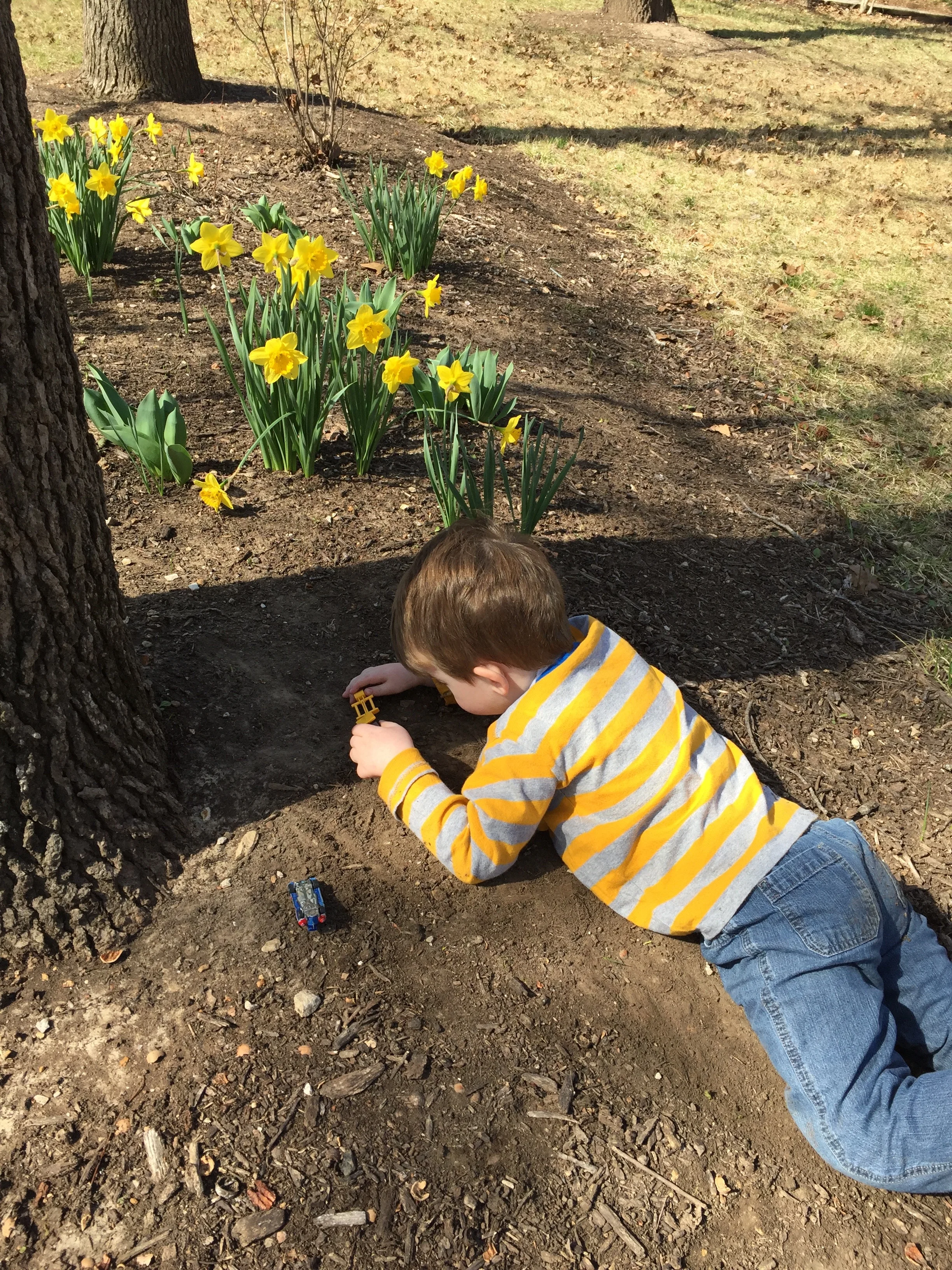 He has little energy. The weather was beautiful this week and though we went outside, he would quickly seek a lap or chair to rest. His most playful day, when he plopped down on his tummy in the dirt and played with trucks, was bittersweet. I enjoyed watching him rest in the sunshine. I was constantly aware of the proximity of his trach stoma to the soil and bacteria it holds.