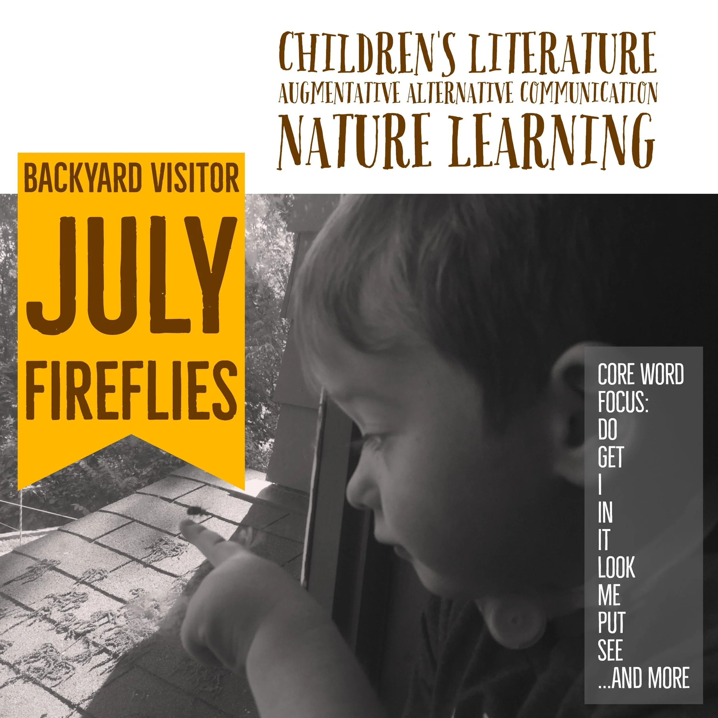 "Backyard Visitors" is the name I am giving to our nature study. We are learning about one animal a month through children's literature, crafts, and time outdoors. We are working on core AAC vocabulary. The first critter that we learned about was the firefly.